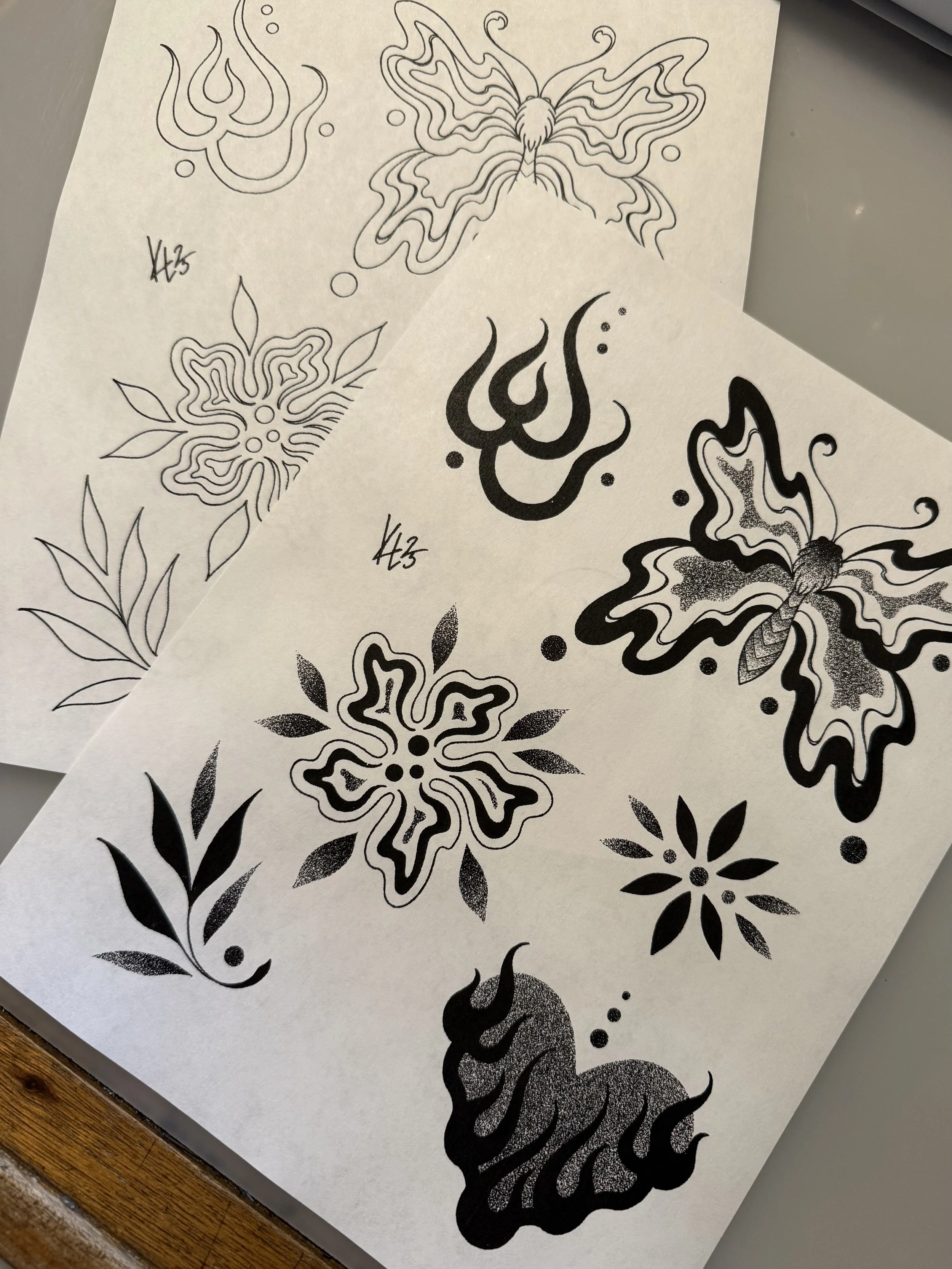 You will receive a response from Kenna with information about whether or not your desired sizing and placement is viable for the design, as well as a price quote based on your specifications! Pre-drawn design requests get booked much faster than custom design requests and usually only take 2 - 4 emails back and forth. Please keep in mind that Kenna Lann does not have a personal assistant and can sometimes take up to 14 days to respond to emails. Than you in advance for your patience and understanding!